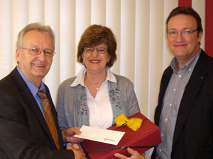 Auf den Tag genau nach 31 Jahren hervorragender und gewissenhafter Mitarbeit wurde Maria Lehmann am 1. März 2012 in den Ruhestand verabschiedet. Als kaufmännische Angestellte war sie für den Bereich Kunden, Fakturierung und Tourenabwicklung zuständig. Die Geschäftsleitung, vertreten durch die geschäftsführenden Gesellschafter Peter Bühler und Gerd Bühler bedankten sich bei Frau Lehmann für die langjährige, treue und loyale Mitarbeit mit einem Präsent und den besten Wünschen für den bevorstehenden Lebensabschnitt. Auf dem Foto ist in der Mitte Maria Lehmann zwischen den Geschäftsführern Peter und Gerd Bühler zu sehen.